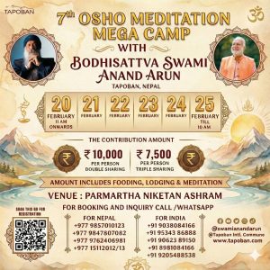 We invite you with love and deep gratitude to join the 7th Osho Mega Meditation Camp — a divine gathering of seekers, meditators, and lovers of truth in the sacred town of Rishikesh, where Ma Ganga flows with timeless grace and purifying energy.